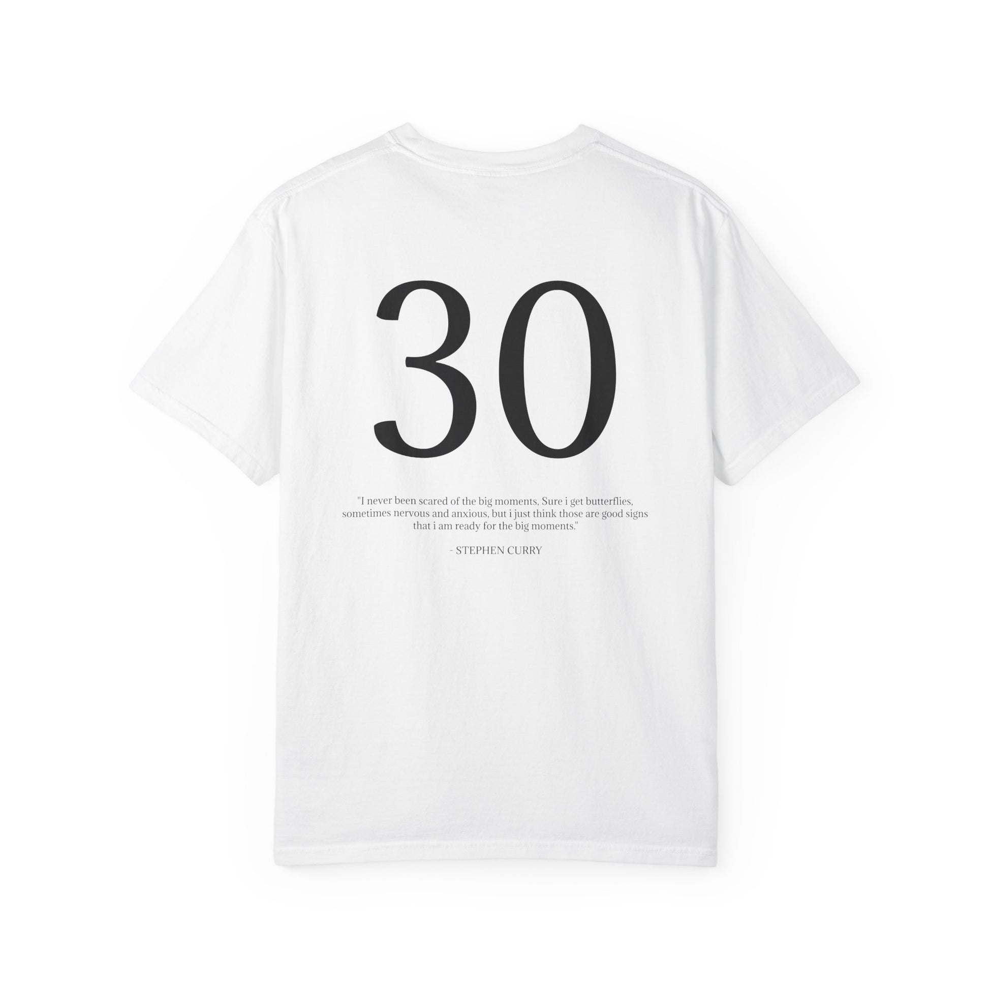 Steph Curry artwork graphic tee featuring a quote from Steph Curry and his jersey number. This comfortable garment-dyed t-shirt is perfect for basketball fans and casual wear . It gives off a sporty vibe and can be worn on game days, sports events, or everyday outings or even better just to chill. '