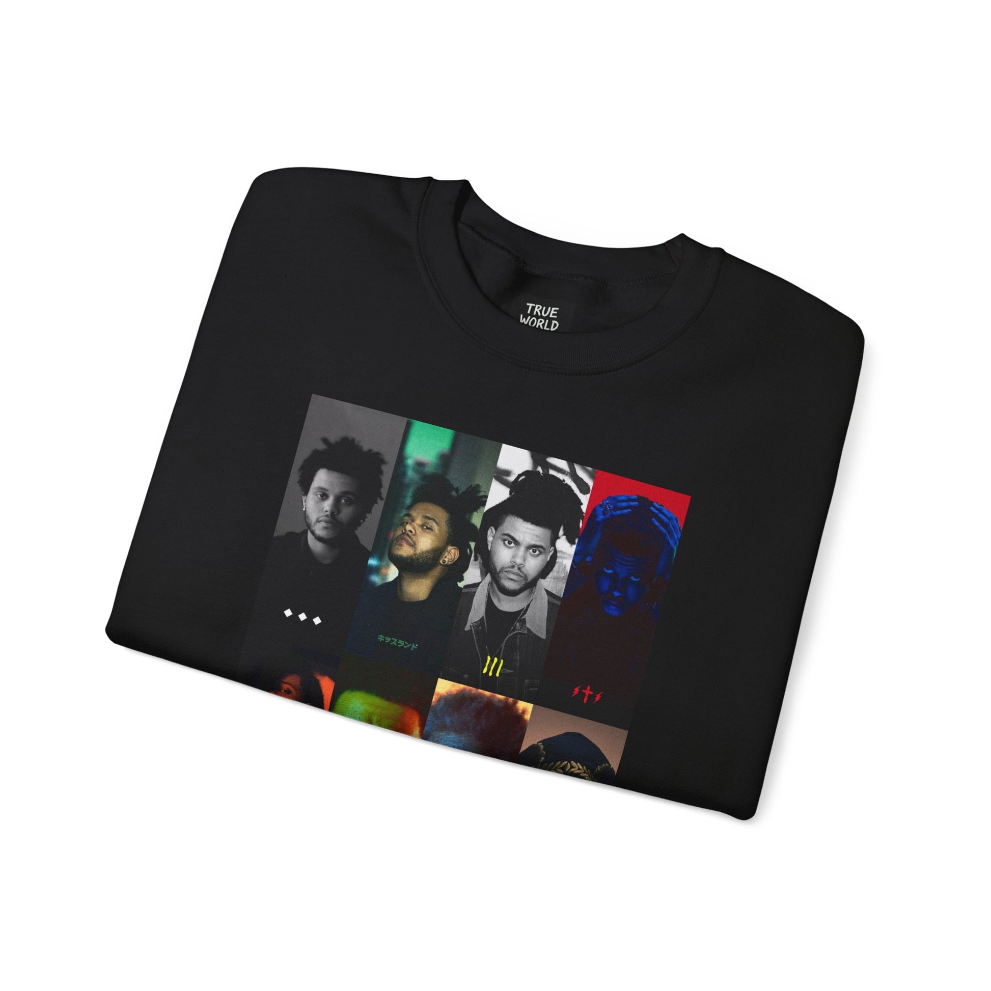 Experience the cozy vibes with 'The End' crewneck sweatshirt from True World Creations, featuring a unique graphic inspired by all the Weekends albums. Perfect for music enthusiasts and fans looking for a comfy and stylish addition to their wardrobe. Ideal for casual wear, music festivals, concerts, and everyday wear.